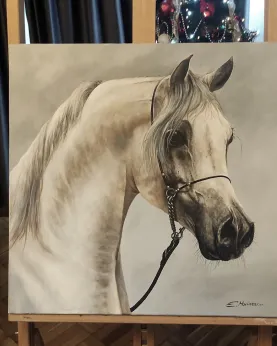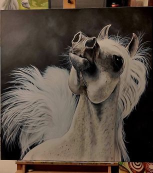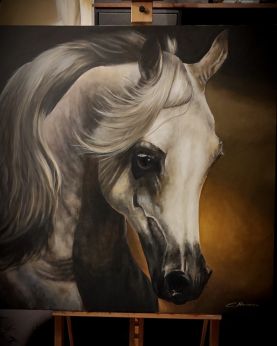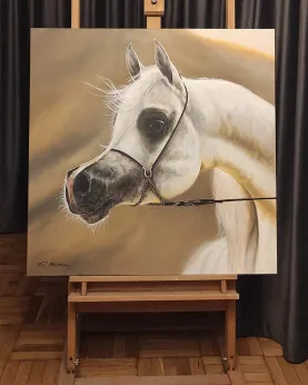 He exhibits in Germany at the "Hundert Art" Galleries in Bad-Soden, Konigstein, Wiesbaden. Newspapers write about his works. Open a personal gallery in Konigstein, Germany. He donates part of the money won to children's hospitals in Germany. Create scenery for HOLLYWOOD movies. But what inspires and animates him is the pure Arabian horse, which in his vision represents the Spirit of the Desert!