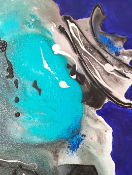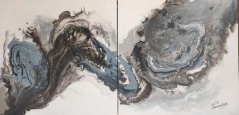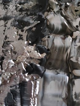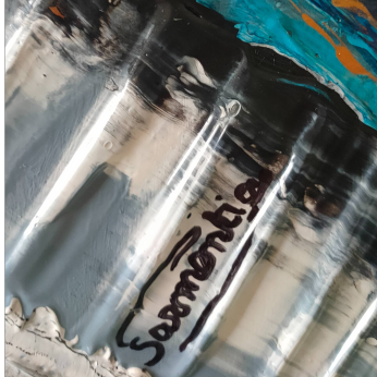 Amoureuse de la matière travaillée au couteau, mon identité artistique s'oriente également vers la découverte des SENS tels que : le toucher ou le parfum, et pour ces raisons, j'aime travailler sur des supports variés comme la toile de jute brute par exemple.